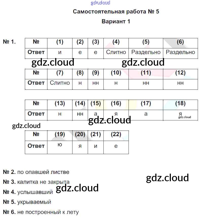 СР-5. Варианты Ответы к самостоятельным работам по Русскому языку 7 класс Рабочая тетрадь Александров Национальное образование