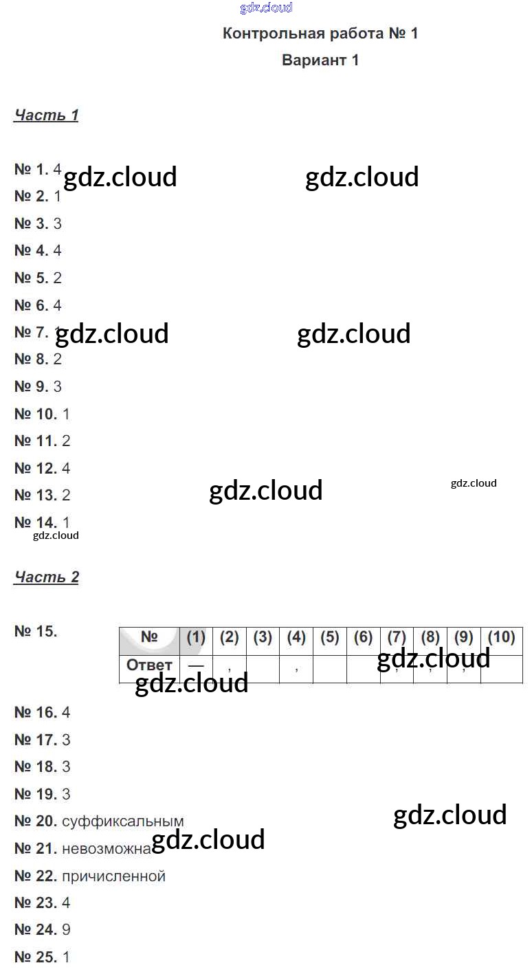 КР-1. Варианты Ответы к контрольным работам по Русскому языку 7 класс Рабочая тетрадь Александров Национальное образование
