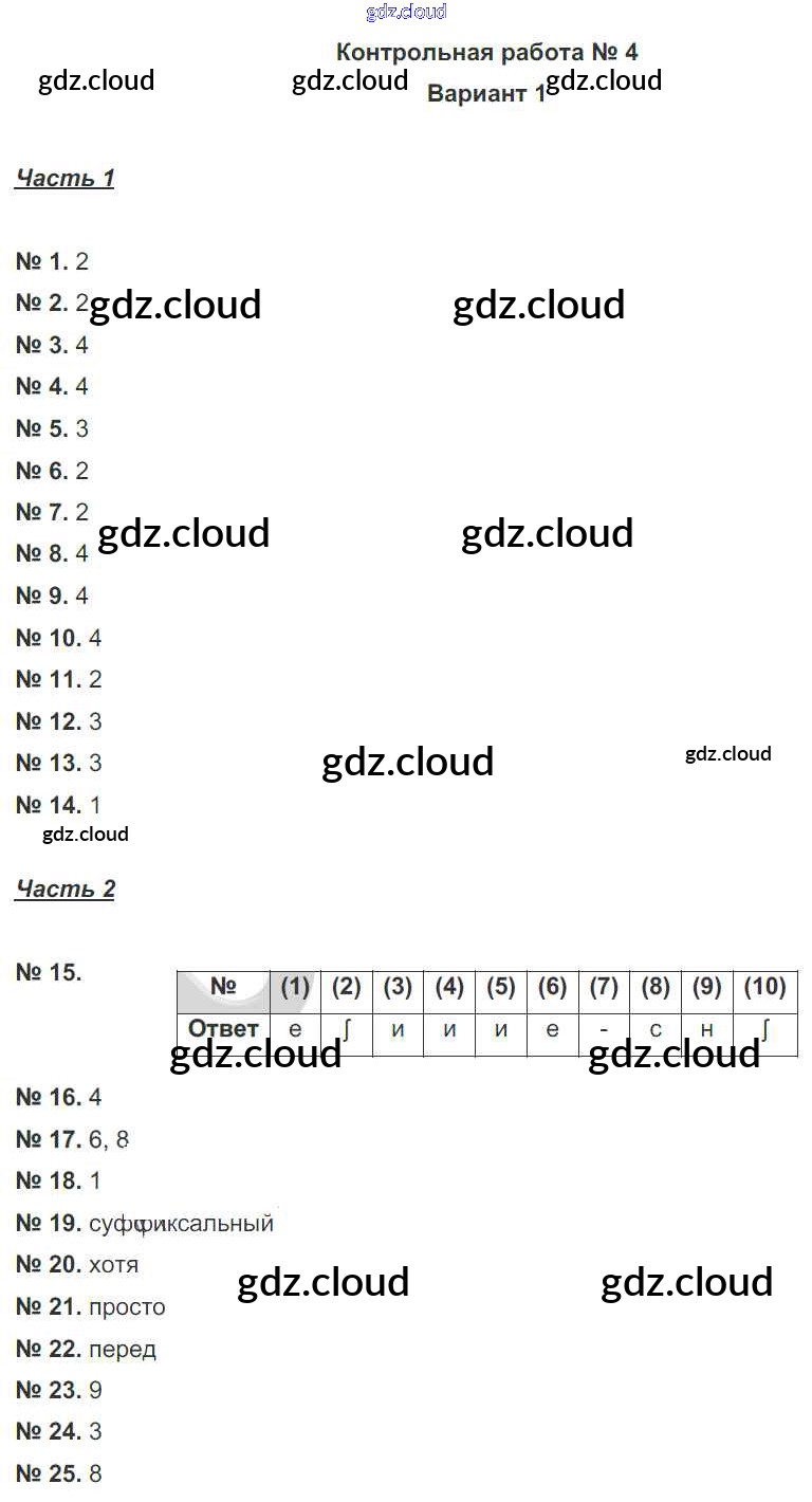 КР-4. Варианты Ответы к контрольным работам по Русскому языку 7 класс Рабочая тетрадь Александров Национальное образование