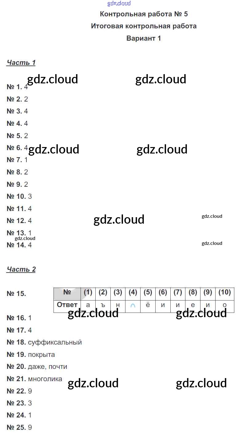 КР-5. Варианты Ответы к контрольным работам по Русскому языку 7 класс Рабочая тетрадь Александров Национальное образование