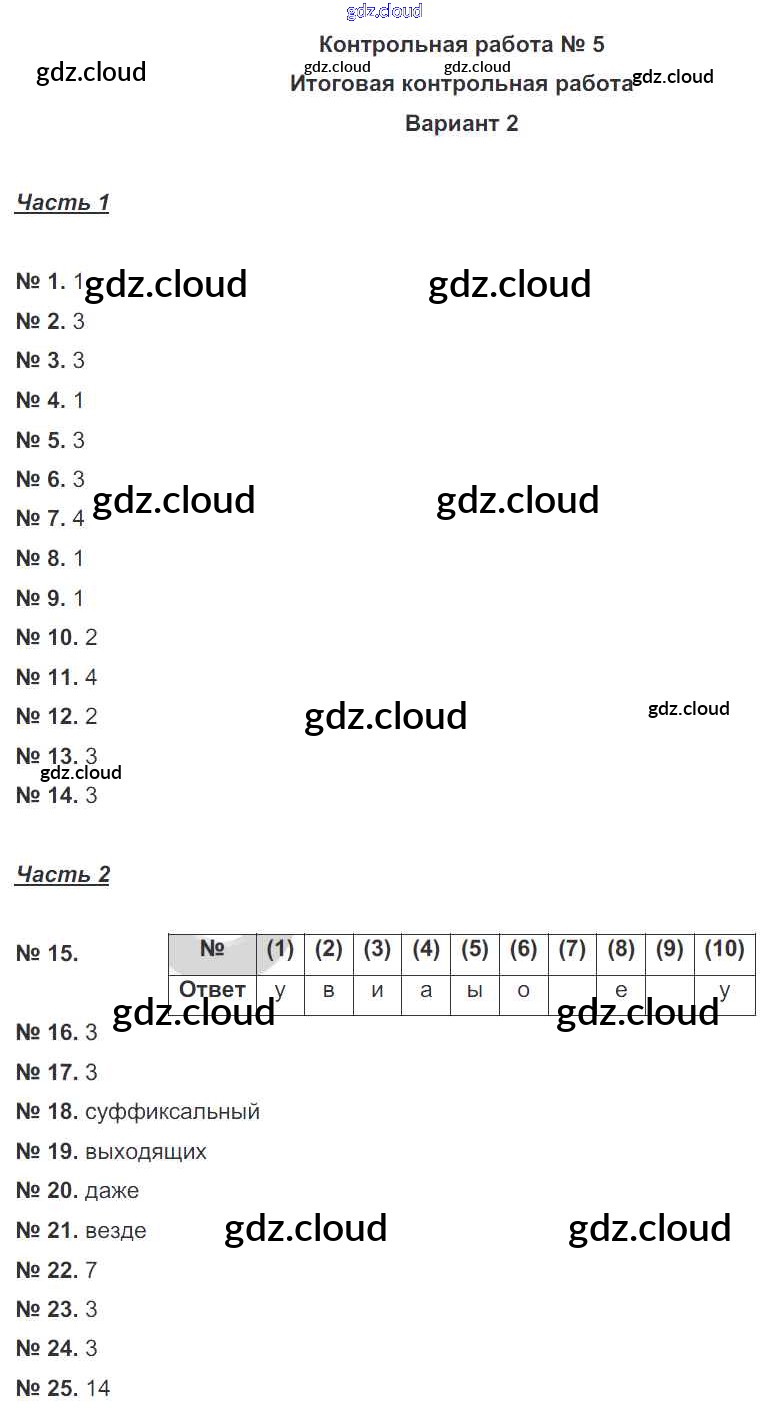 КР-5. Варианты Ответы к контрольным работам по Русскому языку 7 класс Рабочая тетрадь Александров Национальное образование