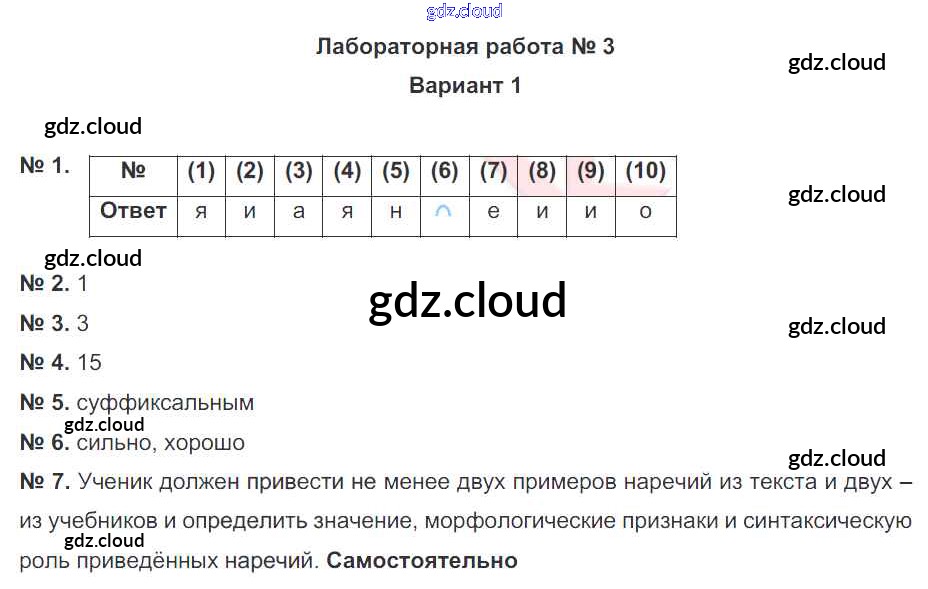 Лабораторные работы 3. Варианты Ответы к лабораторным работам по Русскому языку 7 класс Рабочая тетрадь Александров Национальное образование