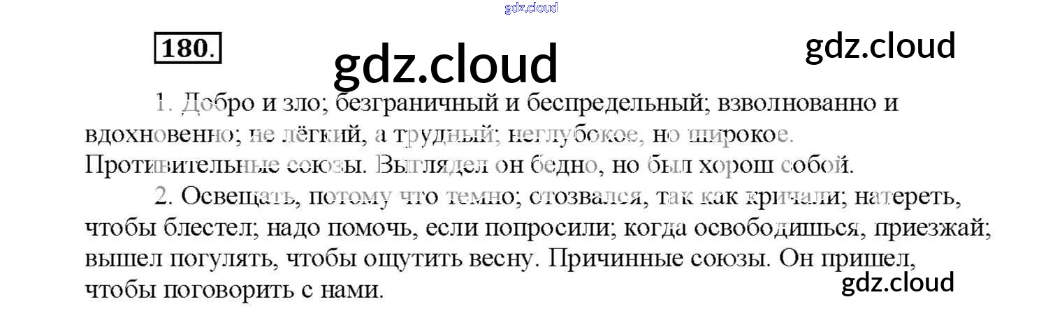 Ответ на задание 180 Рабочая тетрадь Русский язык за 7 (седьмой) класс Янченко, Латфуллина, Михайлова 2017, 2022 Часть 1, 2