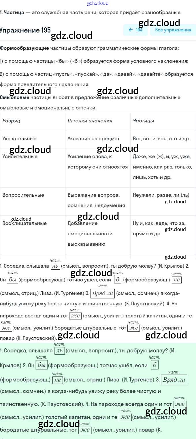 Ответ на задание 195 Рабочая тетрадь Русский язык за 7 (седьмой) класс Янченко, Латфуллина, Михайлова 2017, 2022 Часть 1, 2