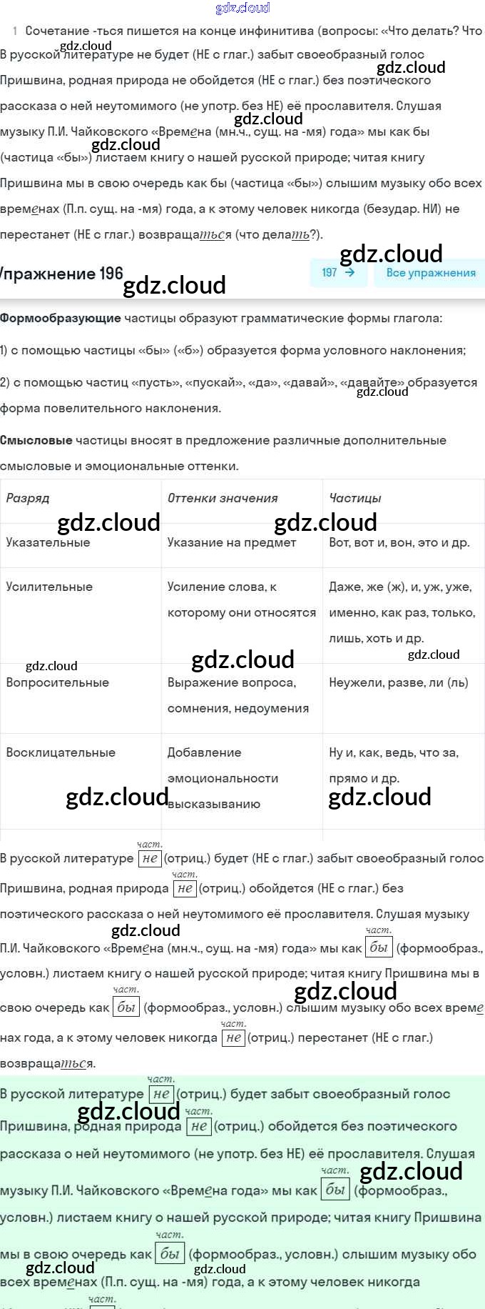 Ответ на задание 196 Рабочая тетрадь Русский язык за 7 (седьмой) класс Янченко, Латфуллина, Михайлова 2017, 2022 Часть 1, 2