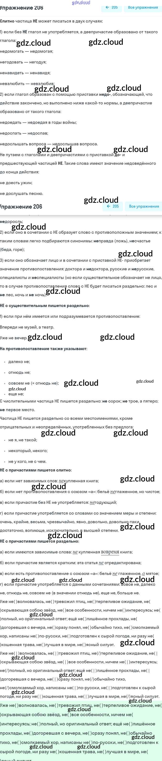 Ответ на задание 206 Рабочая тетрадь Русский язык за 7 (седьмой) класс Янченко, Латфуллина, Михайлова 2017, 2022 Часть 1, 2