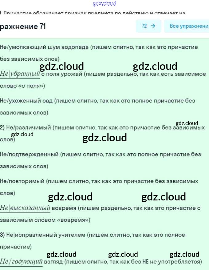 Ответ на задание 71 Рабочая тетрадь Русский язык за 7 (седьмой) класс Янченко, Латфуллина, Михайлова 2017, 2022 Часть 1, 2