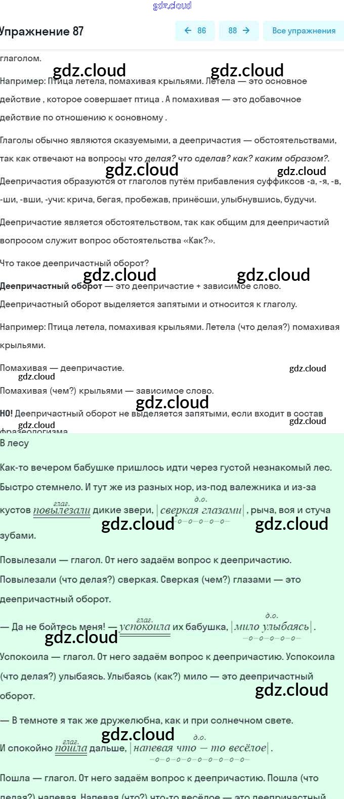 Ответ на задание 87 Рабочая тетрадь Русский язык за 7 (седьмой) класс Янченко, Латфуллина, Михайлова 2017, 2022 Часть 1, 2