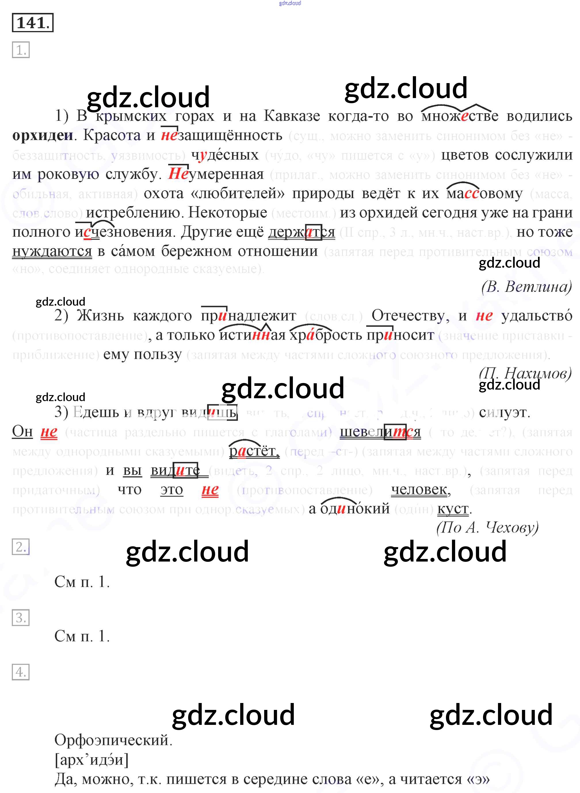 Ответ на задание 141 Учебник Русский язык за 7 (седьмой) класс Разумовская, Львова, Капинос, Львов, Сергеева, Соловейчик УМК 2014, 2022