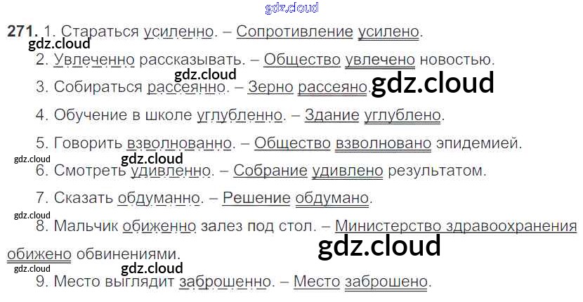 Ответ на задание 271 Учебник Русский язык за 7 (седьмой) класс Разумовская, Львова, Капинос, Львов, Сергеева, Соловейчик УМК 2014, 2022