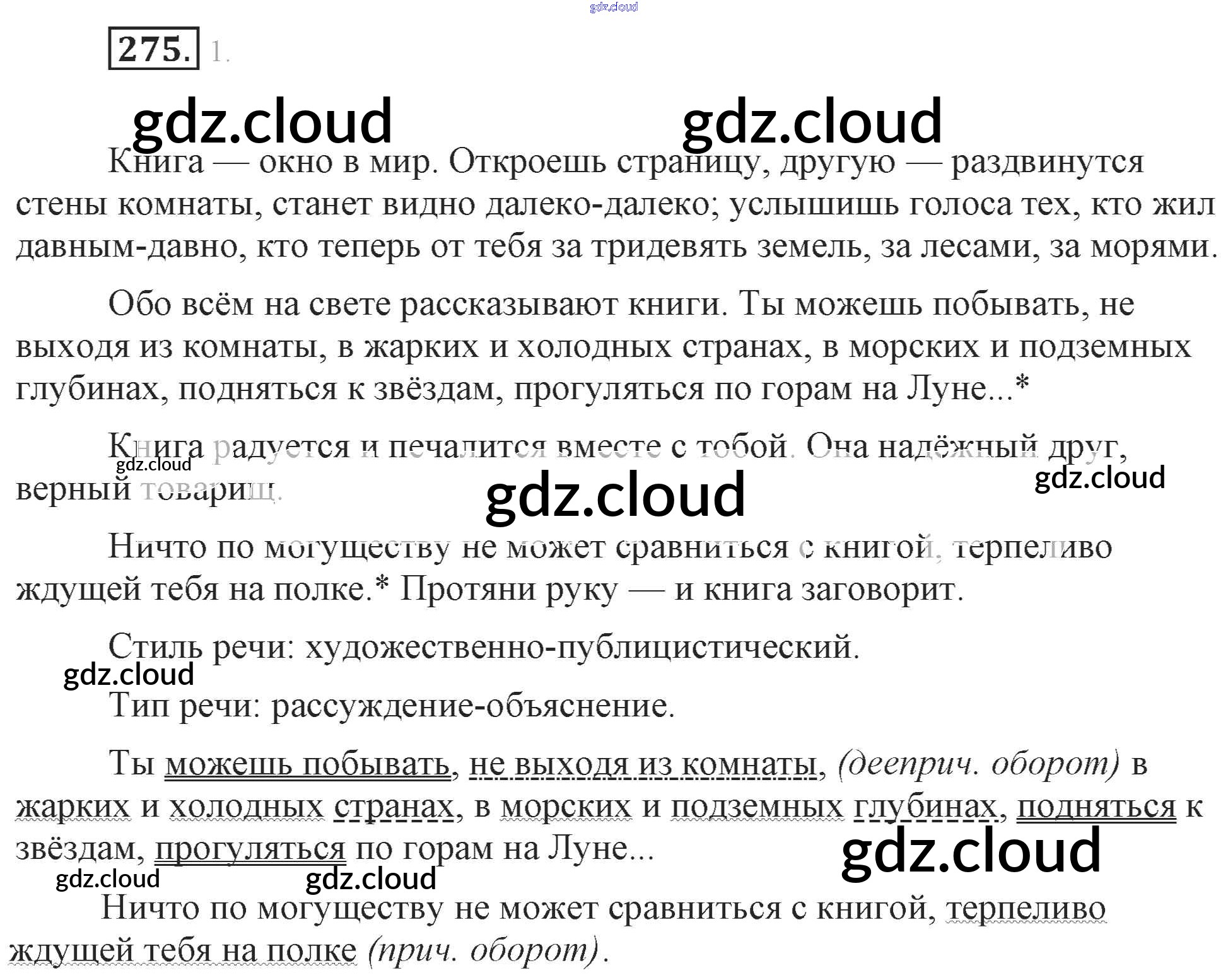 Ответ на задание 275 Учебник Русский язык за 7 (седьмой) класс Разумовская, Львова, Капинос, Львов, Сергеева, Соловейчик УМК 2014, 2022