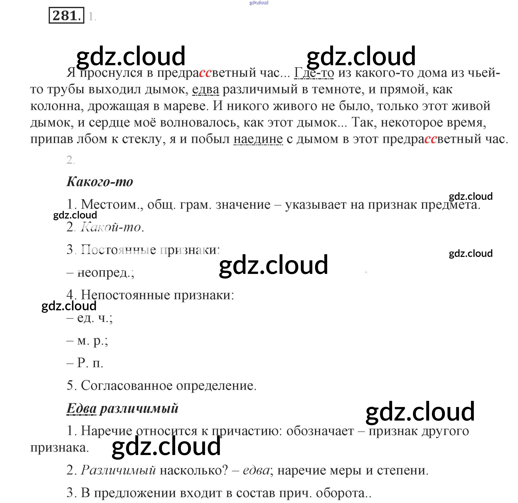 Ответ на задание 281 Учебник Русский язык за 7 (седьмой) класс Разумовская, Львова, Капинос, Львов, Сергеева, Соловейчик УМК 2014, 2022