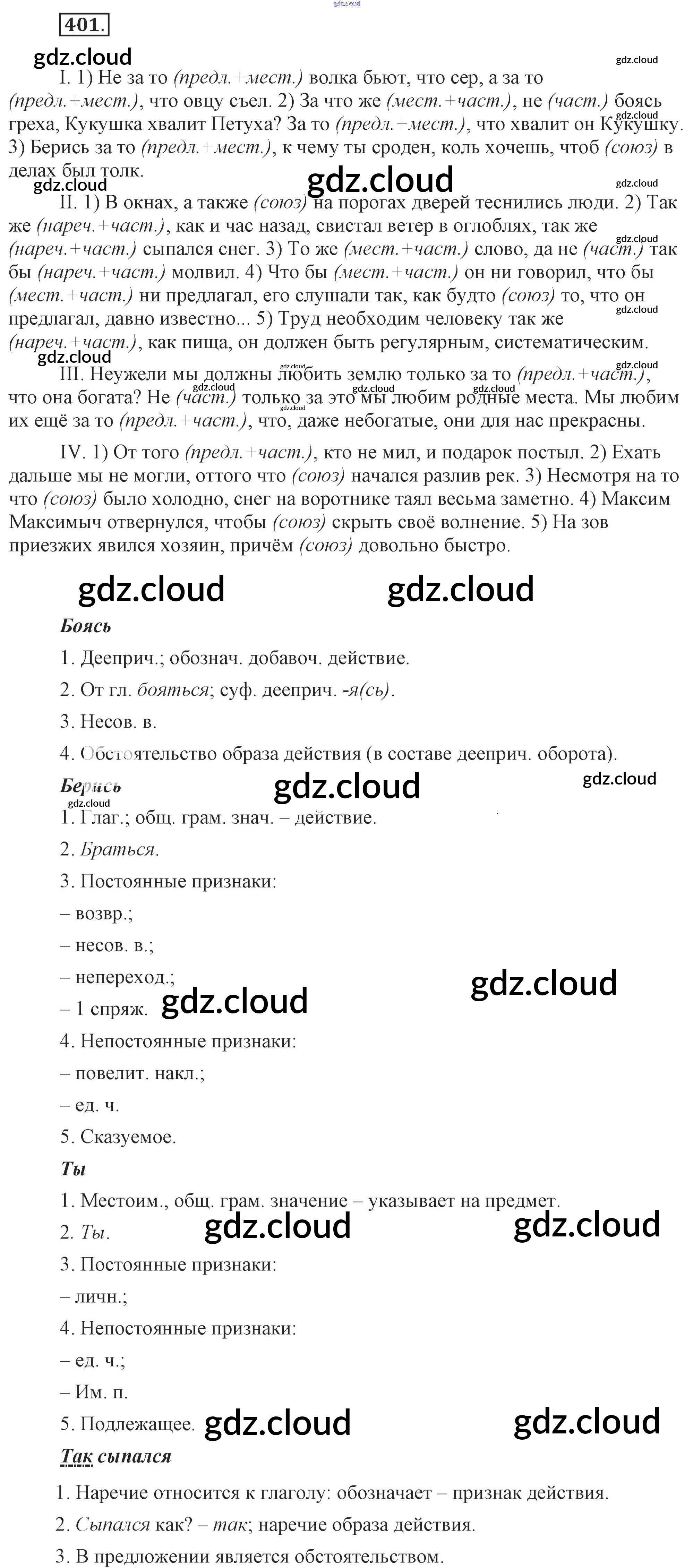 Ответ на задание 401 Учебник Русский язык за 7 (седьмой) класс Разумовская, Львова, Капинос, Львов, Сергеева, Соловейчик УМК 2014, 2022