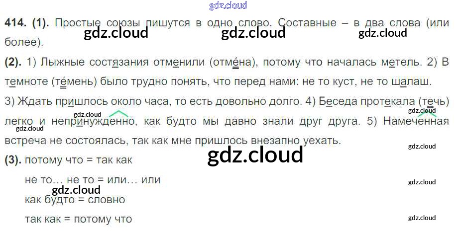 Ответ на задание 414 Учебник Русский язык за 7 (седьмой) класс Разумовская, Львова, Капинос, Львов, Сергеева, Соловейчик УМК 2014, 2022