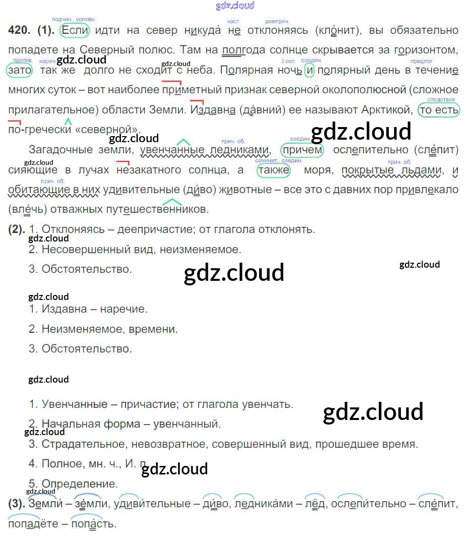 Ответ на задание 420 Учебник Русский язык за 7 (седьмой) класс Разумовская, Львова, Капинос, Львов, Сергеева, Соловейчик УМК 2014, 2022