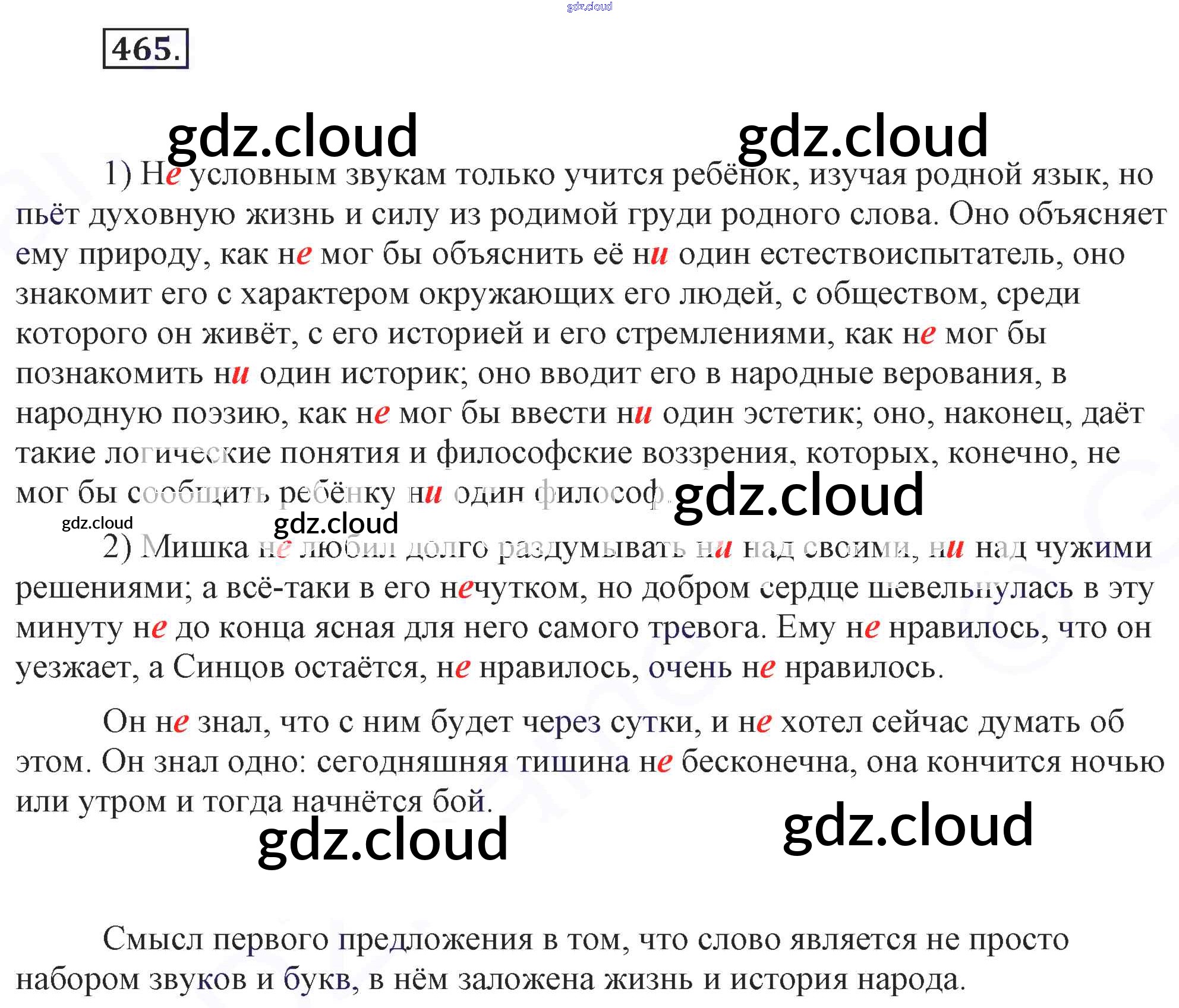 Ответ на задание 465 Учебник Русский язык за 7 (седьмой) класс Разумовская, Львова, Капинос, Львов, Сергеева, Соловейчик УМК 2014, 2022