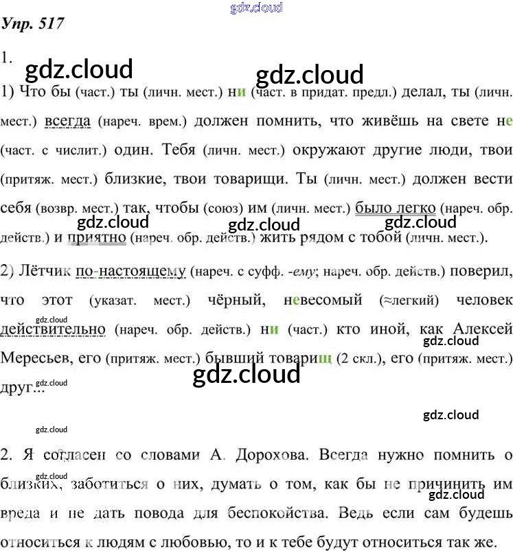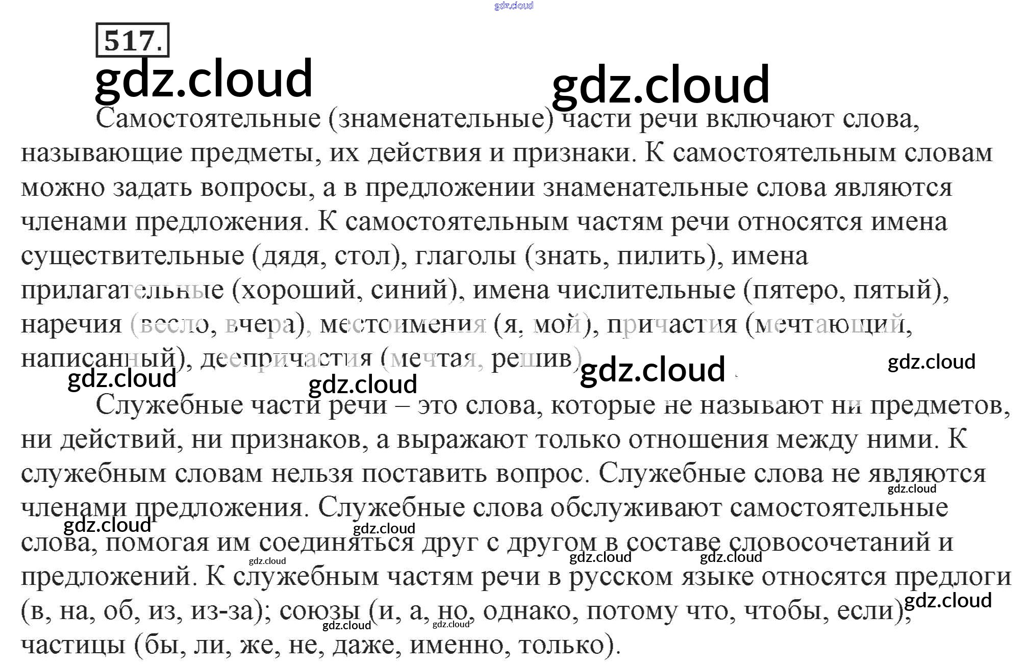 Ответ на задание 517 Учебник Русский язык за 7 (седьмой) класс Разумовская, Львова, Капинос, Львов, Сергеева, Соловейчик УМК 2014, 2022