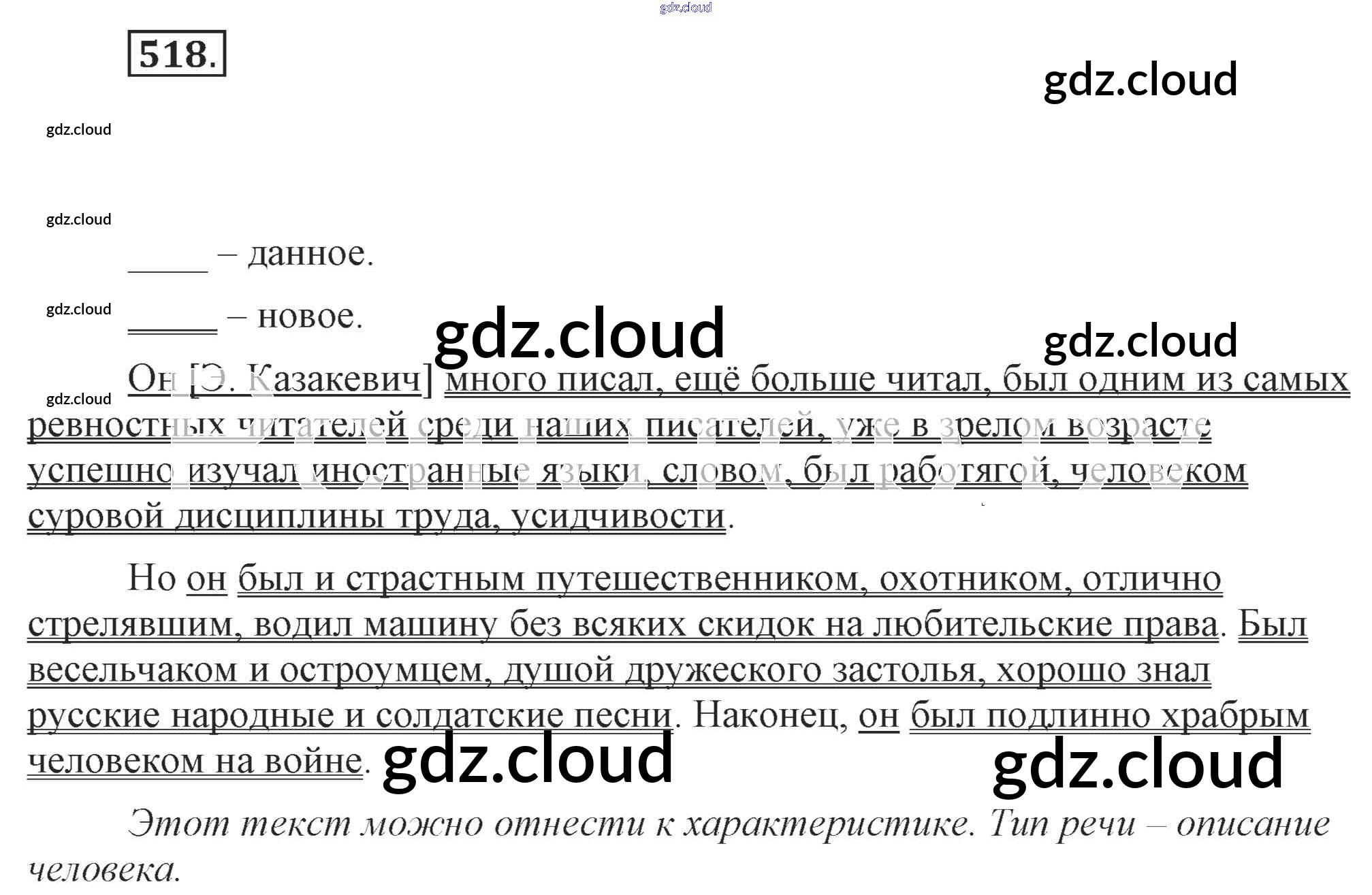Ответ на задание 518 Учебник Русский язык за 7 (седьмой) класс Разумовская, Львова, Капинос, Львов, Сергеева, Соловейчик УМК 2014, 2022