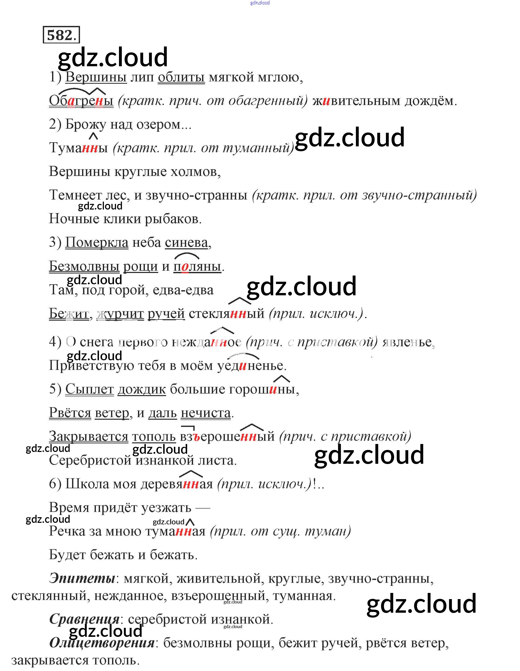Ответ на задание 582 Учебник Русский язык за 7 (седьмой) класс Разумовская, Львова, Капинос, Львов, Сергеева, Соловейчик УМК 2014, 2022
