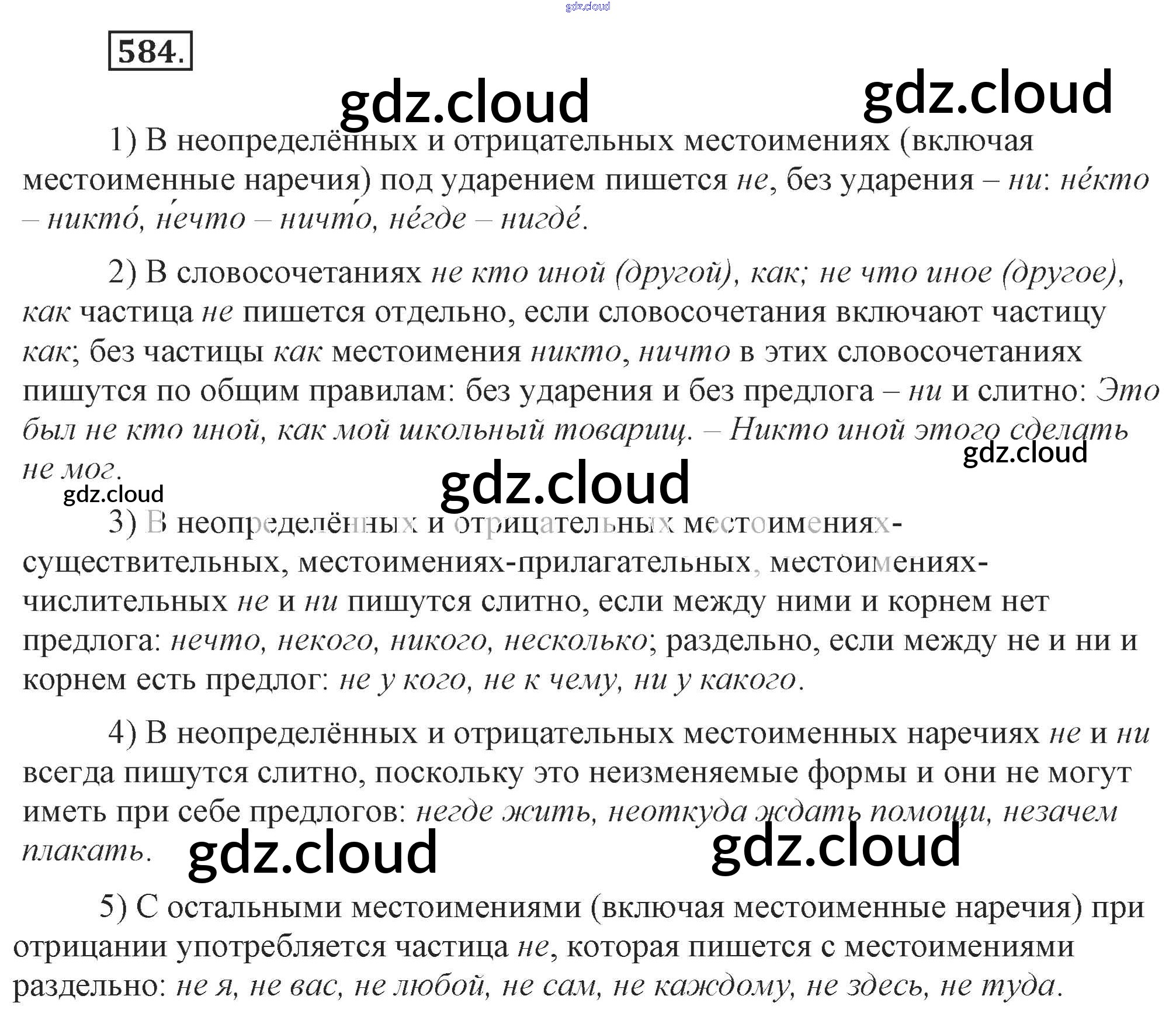 Ответ на задание 584 Учебник Русский язык за 7 (седьмой) класс Разумовская, Львова, Капинос, Львов, Сергеева, Соловейчик УМК 2014, 2022