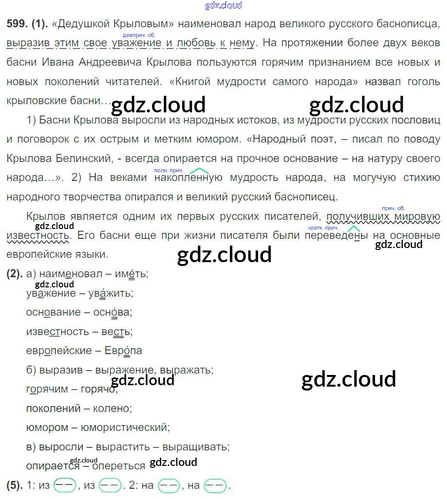 Ответ на задание 599 Учебник Русский язык за 7 (седьмой) класс Разумовская, Львова, Капинос, Львов, Сергеева, Соловейчик УМК 2014, 2022