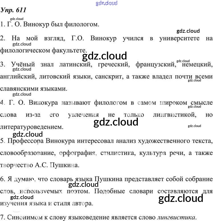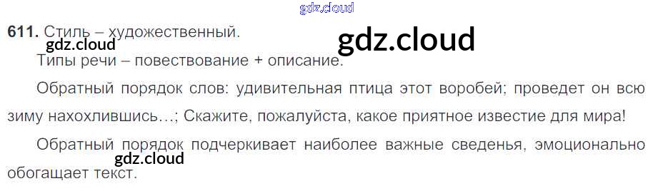 Ответ на задание 611 Учебник Русский язык за 7 (седьмой) класс Разумовская, Львова, Капинос, Львов, Сергеева, Соловейчик УМК 2014, 2022