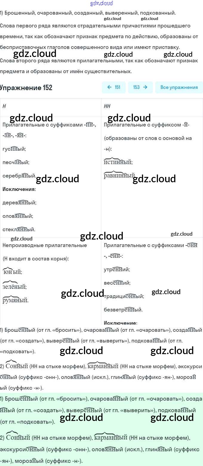 Ответ на задание 152 Учебник Русский язык за 7 (седьмой) класс Рыбченкова, Александрова, Загоровская, Нарушевич, Вакурова 2016, 2019