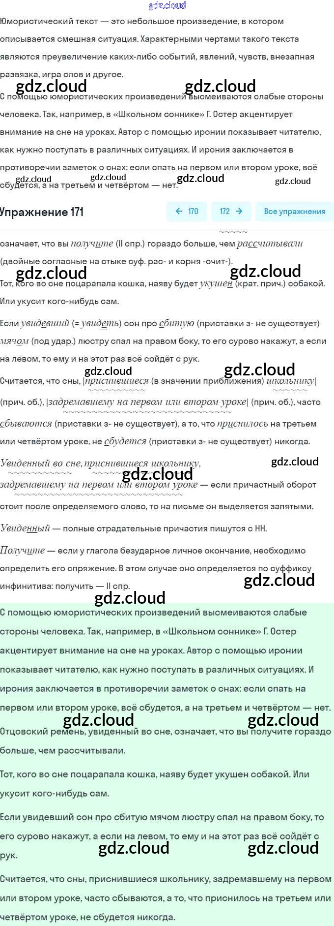Ответ на задание 171 Учебник Русский язык за 7 (седьмой) класс Рыбченкова, Александрова, Загоровская, Нарушевич, Вакурова 2016, 2019
