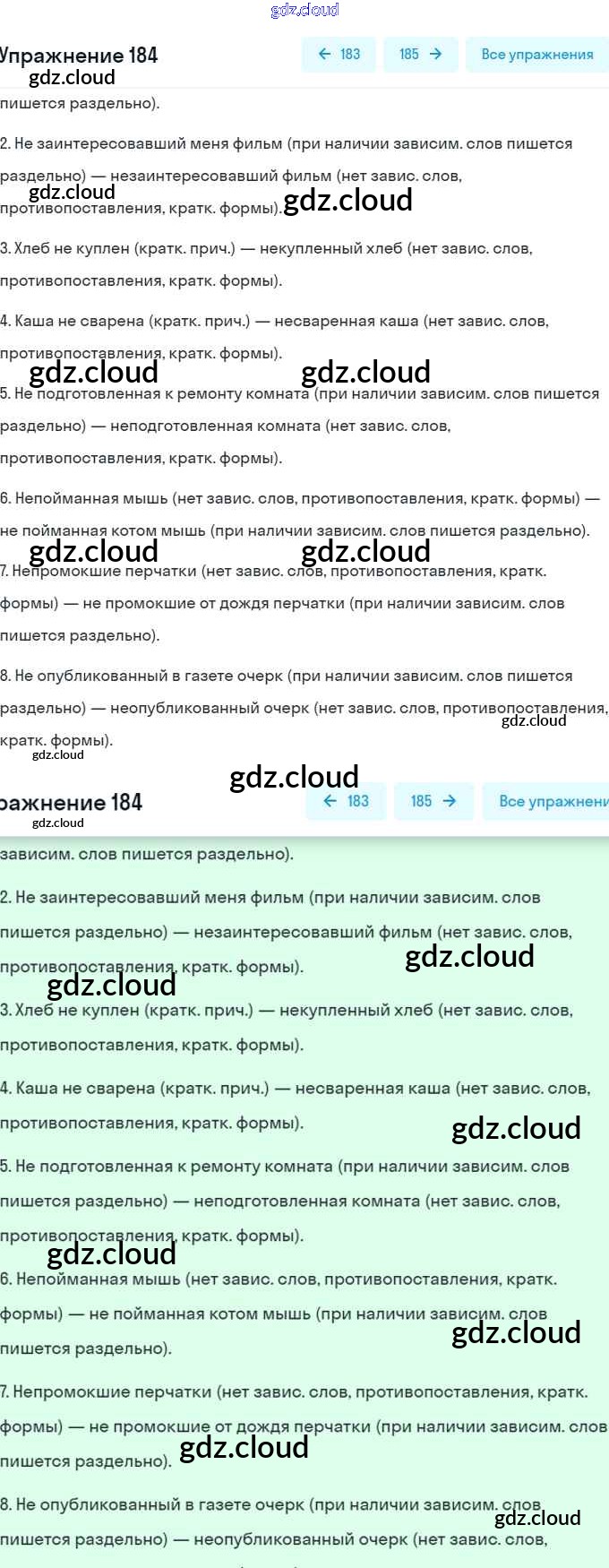 Ответ на задание 184 Учебник Русский язык за 7 (седьмой) класс Рыбченкова, Александрова, Загоровская, Нарушевич, Вакурова 2016, 2019