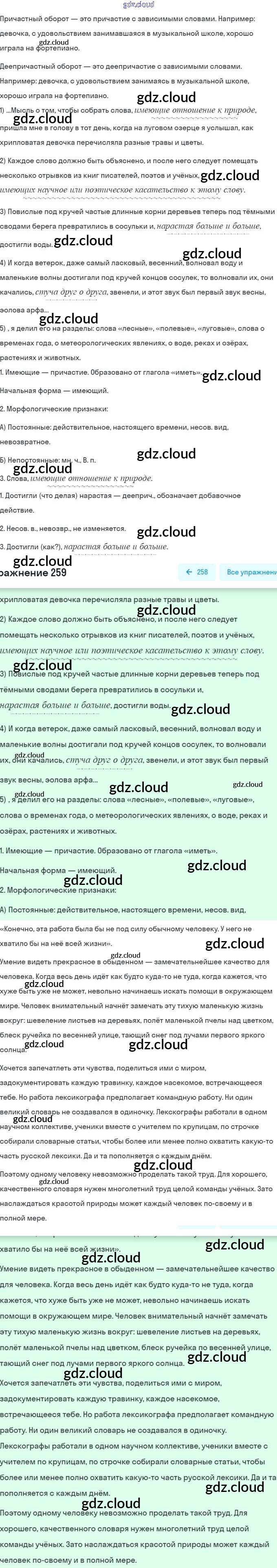 Ответ на задание 259 Учебник Русский язык за 7 (седьмой) класс Рыбченкова, Александрова, Загоровская, Нарушевич, Вакурова 2016, 2019
