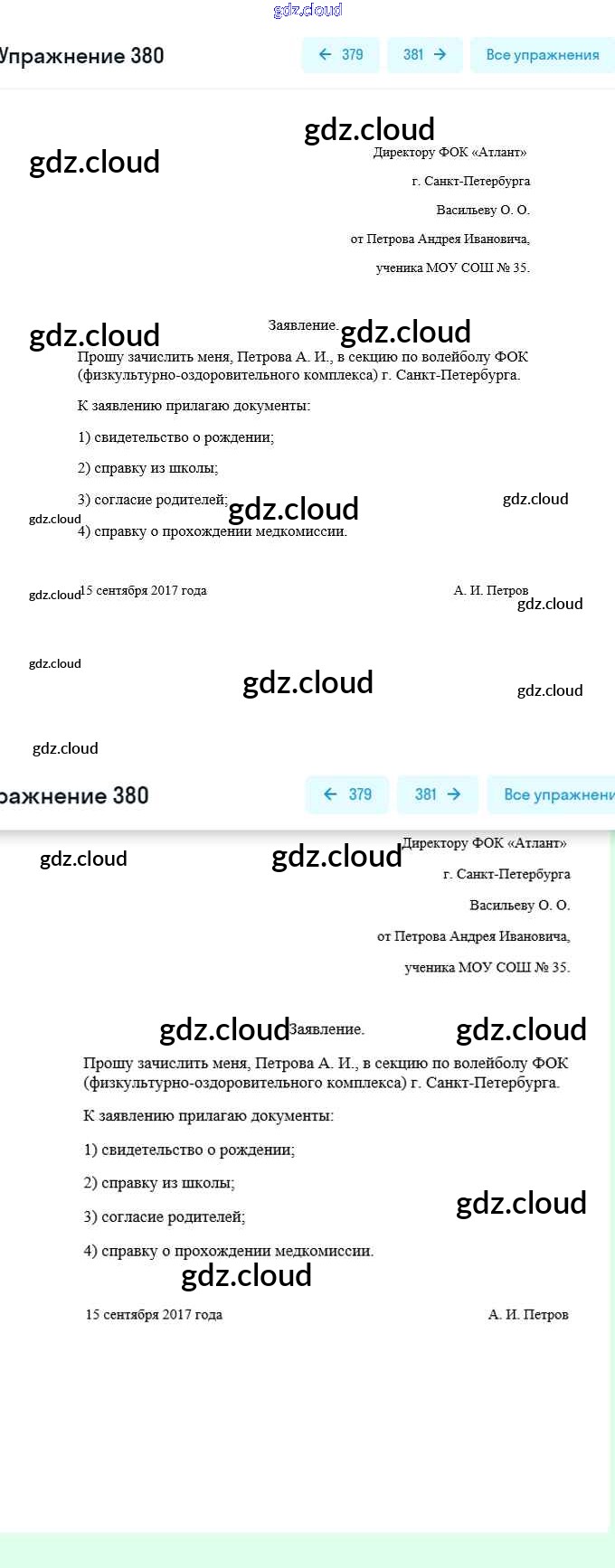 Ответ на задание 380 Учебник Русский язык за 7 (седьмой) класс Рыбченкова, Александрова, Загоровская, Нарушевич, Вакурова 2016, 2019