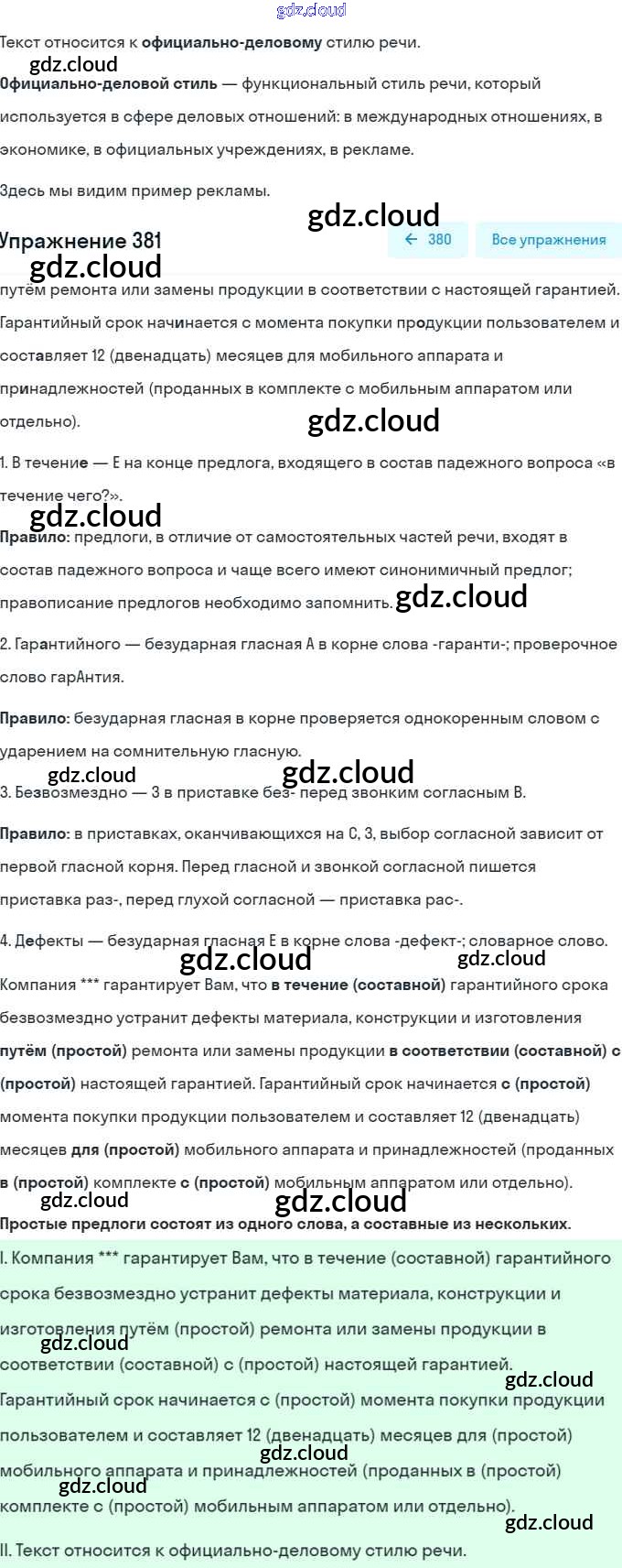 Ответ на задание 381 Учебник Русский язык за 7 (седьмой) класс Рыбченкова, Александрова, Загоровская, Нарушевич, Вакурова 2016, 2019