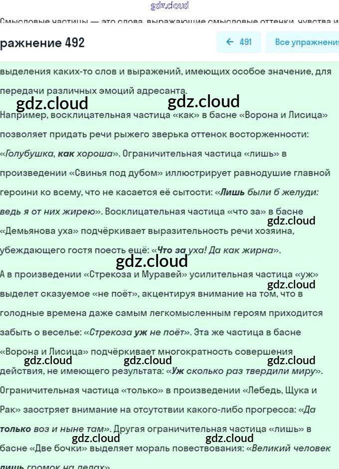 Ответ на задание 492 Учебник Русский язык за 7 (седьмой) класс Рыбченкова, Александрова, Загоровская, Нарушевич, Вакурова 2016, 2019