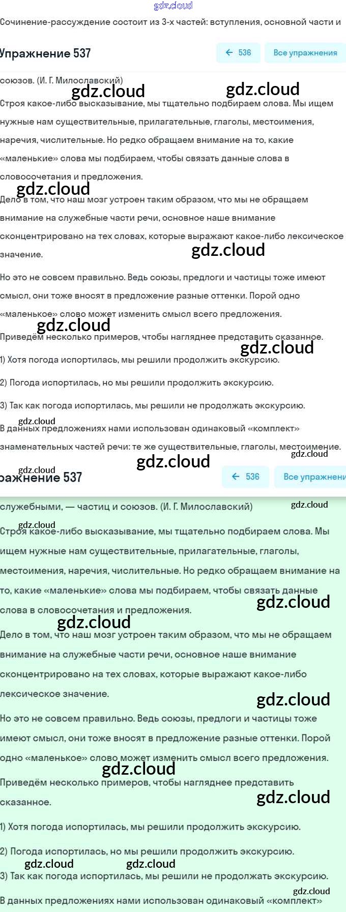 Ответ на задание 537 Учебник Русский язык за 7 (седьмой) класс Рыбченкова, Александрова, Загоровская, Нарушевич, Вакурова 2016, 2019