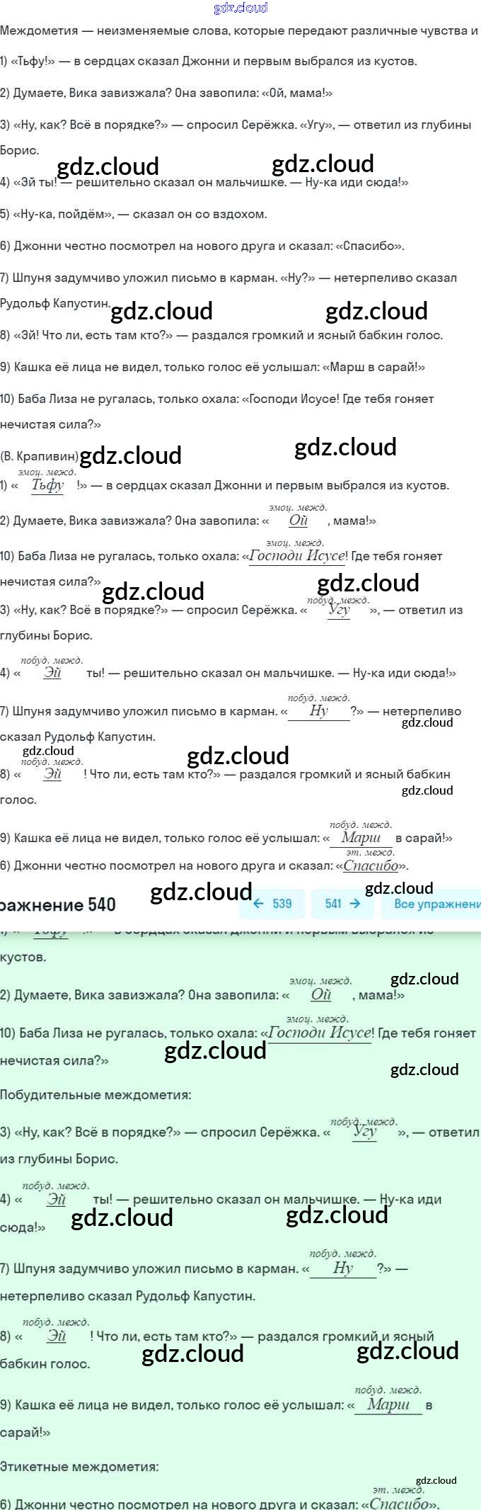 Ответ на задание 540 Учебник Русский язык за 7 (седьмой) класс Рыбченкова, Александрова, Загоровская, Нарушевич, Вакурова 2016, 2019