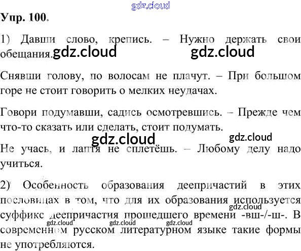 Ответ на задание 100 Учебник Русский язык за 7 (седьмой) класс Александрова, Загоровская, Богданов 2020 ФГОС онлайн и без номера телефона.