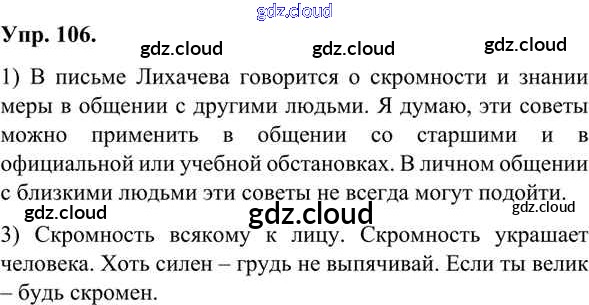Ответ на задание 106 Учебник Русский язык за 7 (седьмой) класс Александрова, Загоровская, Богданов 2020 ФГОС онлайн и без номера телефона.
