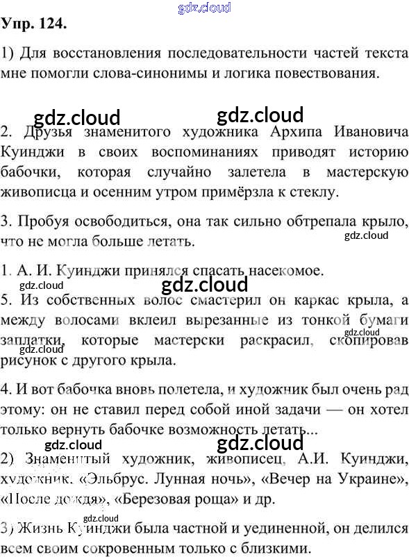 Ответ на задание 124 Учебник Русский язык за 7 (седьмой) класс Александрова, Загоровская, Богданов 2020 ФГОС онлайн и без номера телефона.