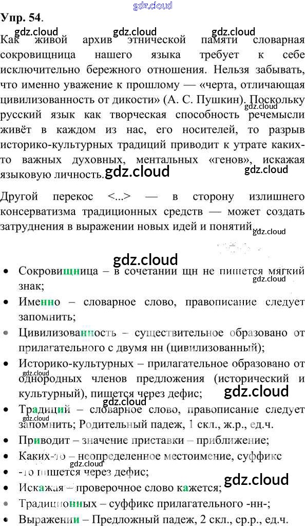 Ответ на задание 54 Учебник Русский язык за 7 (седьмой) класс Александрова, Загоровская, Богданов 2020 ФГОС онлайн и без номера телефона.