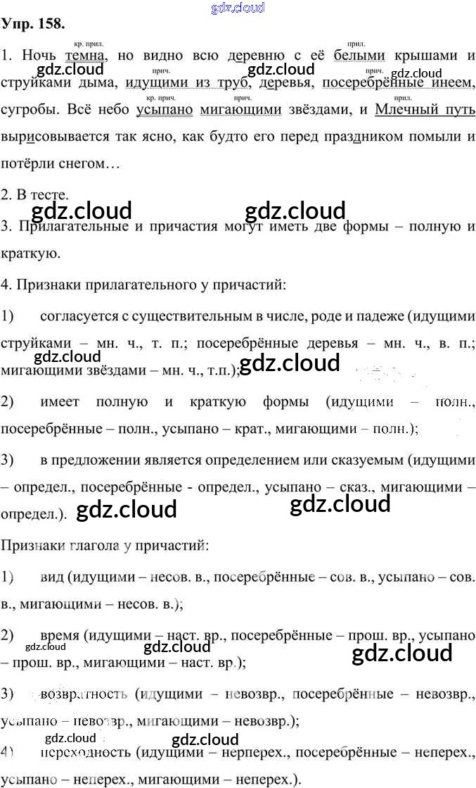 Ответ на задание 158 Учебник Русский язык за 7 (седьмой) класс Быстрова, Кибирева, Гостева, Воителева Инновационная школа 2019 Часть 1, 2