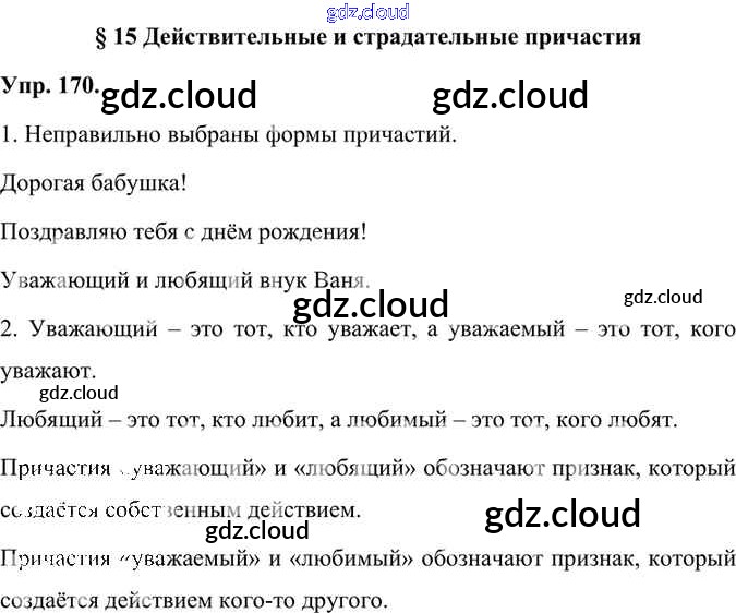 Ответ на задание 170 Учебник Русский язык за 7 (седьмой) класс Быстрова, Кибирева, Гостева, Воителева Инновационная школа 2019 Часть 1, 2