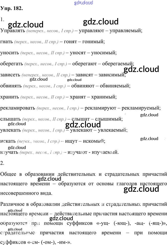 Ответ на задание 182 Учебник Русский язык за 7 (седьмой) класс Быстрова, Кибирева, Гостева, Воителева Инновационная школа 2019 Часть 1, 2