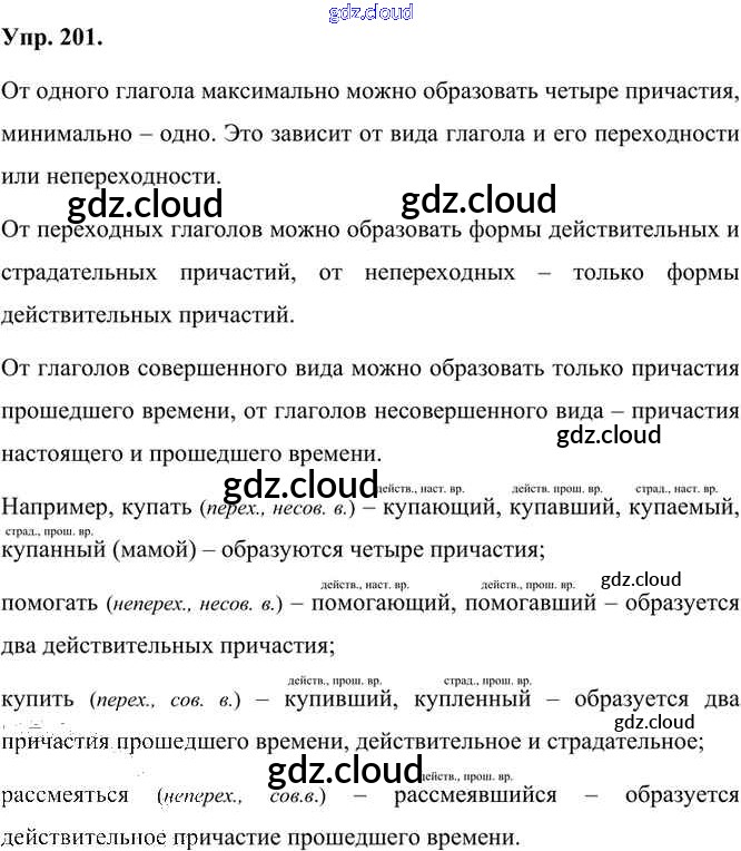 Ответ на задание 201 Учебник Русский язык за 7 (седьмой) класс Быстрова, Кибирева, Гостева, Воителева Инновационная школа 2019 Часть 1, 2
