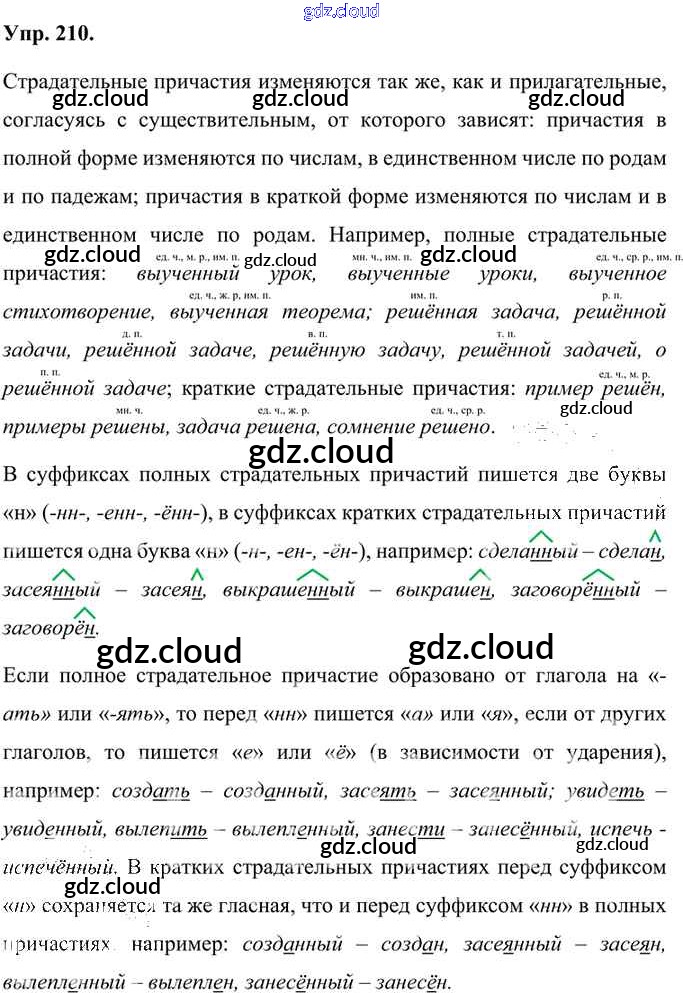 Ответ на задание 210 Учебник Русский язык за 7 (седьмой) класс Быстрова, Кибирева, Гостева, Воителева Инновационная школа 2019 Часть 1, 2