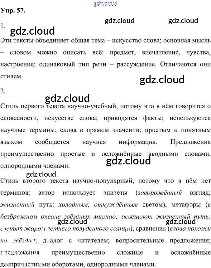 Ответ на задание 57 Учебник Русский язык за 7 (седьмой) класс Быстрова, Кибирева, Гостева, Воителева Инновационная школа 2019 Часть 1, 2