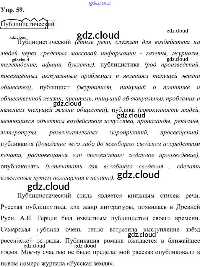 Ответ на задание 59 Учебник Русский язык за 7 (седьмой) класс Быстрова, Кибирева, Гостева, Воителева Инновационная школа 2019 Часть 1, 2