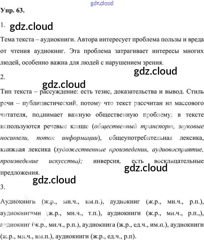 Ответ на задание 63 Учебник Русский язык за 7 (седьмой) класс Быстрова, Кибирева, Гостева, Воителева Инновационная школа 2019 Часть 1, 2