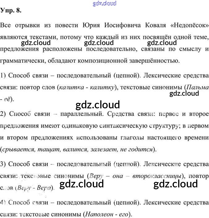 Ответ на задание 8 Учебник Русский язык за 7 (седьмой) класс Быстрова, Кибирева, Гостева, Воителева Инновационная школа 2019 Часть 1, 2