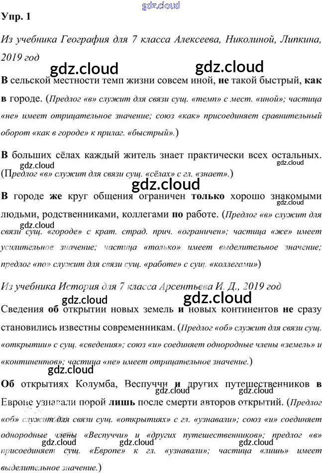 Ответ на задание 1 Учебник Русский язык за 7 (седьмой) класс Быстрова, Кибирева, Гостева, Воителева Инновационная школа 2019 Часть 1, 2