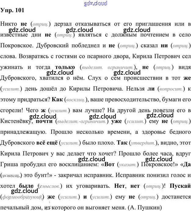 Ответ на задание 101 Учебник Русский язык за 7 (седьмой) класс Быстрова, Кибирева, Гостева, Воителева Инновационная школа 2019 Часть 1, 2